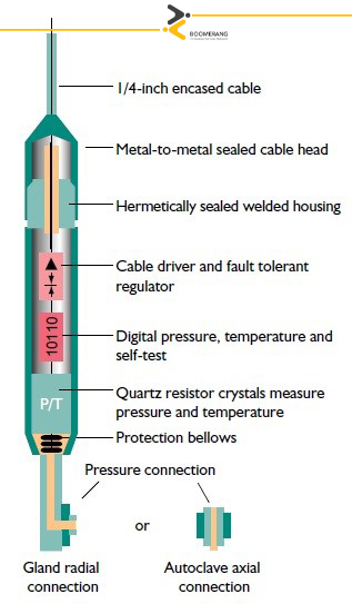 همچنین سیستمهای دائمی برای کاربردهای مانیتورینگ، مهندسی شدهاند و برای مدتزمان طولانی قابل استفاده هستند. قطعات الکترونیکی دیجیتال با گیجهای آن طوری طراحی شدهاند که در دامنه وسیعی از دما بدون نیاز به نگهداری مورد استفاده قرار گیرند. نکتهای که در این بخش حائز اهمیت است این است که مشخصههای اندازهگیری این قطعات بیشتر بر پایداری در زمان طولانی تکیه دارد تا پاسخ دینامیکی سریع، به همین دلیل انتخاب سنسور مناسب از اهمیت ویژهای برخوردار است و در همین راستا کریستالهای کوارتز به همراه یاقوت کبود در این سنسورها مورد استفاده قرار گرفتهاند.