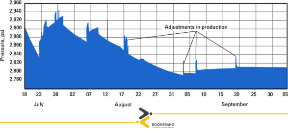 کابلهایی که برای نصب دائمی طراحی میشوند باید در برابر فشار، دما و سیالاتی با خورندگی بالا مقاوم باشند. همچنین این کابلها باید از نظر مکانیکی طوری طراحی شوند که در طول مدت نصب نیز دچار آسیب نگردند به همین خاطر معمولاً کابلهای single conductor مورد استفاده قرار میگیرند. اتصالاتی نیز که برای این کار مورد استفاده قرار میگیرند باید طوری طراحی شوند که دوام بالایی داشته باشند. این اتصالات شامل اتصالات ته چاهی (توان و فشار)، gauge mandrel و اتصالات uphole هستند. بسته به اینکه wellhead در روی خشکی و یا سطح دریا (بر روی سکو) یا زیر دریا قرار گرفته باشد پیچیدگیهایی را در نصب و راهاندازی در سطح ایجاد میکند. برای چاههای زیر دریا، سیستمی که مورد استفاده قرار میگیرد بهطور نمونه از طریق سیستمهای جمعآوری دادههای موجود و متصل به مرکز این کار را انجام میدهد. بر روی سکوها نیز، چندین گیج دائمی ممکن است به یک بخش سطحی مستقل متصل باشند و ارتباطات و موارد اندازهگیری شده از طریق لینکهای استاندارد یا پیشرفته نظیر ماهواره منتقل گردد. شکل (۳) نمونهای از دادههای پیوسته جریانی را نشان میدهد که طی مدت ۸۰ روز ثبت شده است و در آن فشار برای بهینهسازی تولید مورد استفاده قرار گرفته و نرخ تولید در سطح مکرراً بر اساس فشار جریان ته چاه تنظیم شده است.